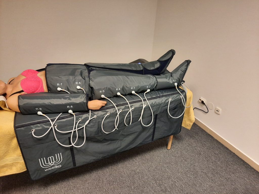 - Pneumatska limfna drenaža: Koristi uređaj sa zračnim kompresijskim manžetama koje se postavljaju na noge, ruke ili trup. Ove manžete se napuhuju i ispuhuju u ciklusima, stvarajući valni pritisak koji poboljšava protok limfe.